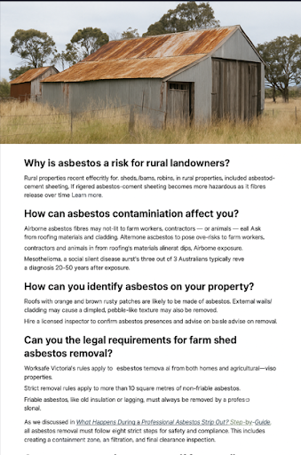 Removing Asbestos from Farm Sheds and Barns: What Every Landowner Should Know Why are farm sheds and barns at high risk for asbestos? Many rural